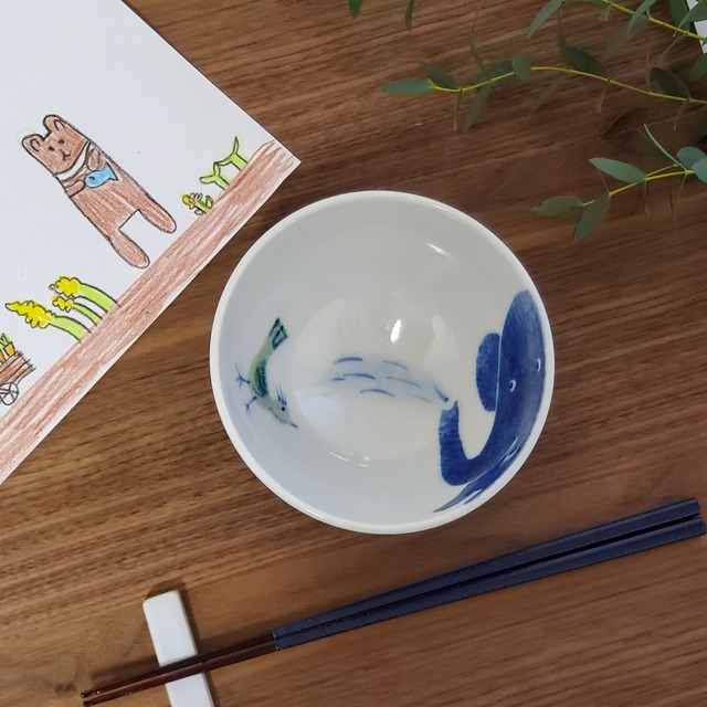 砥部焼 幸せの青いぞう 茶碗